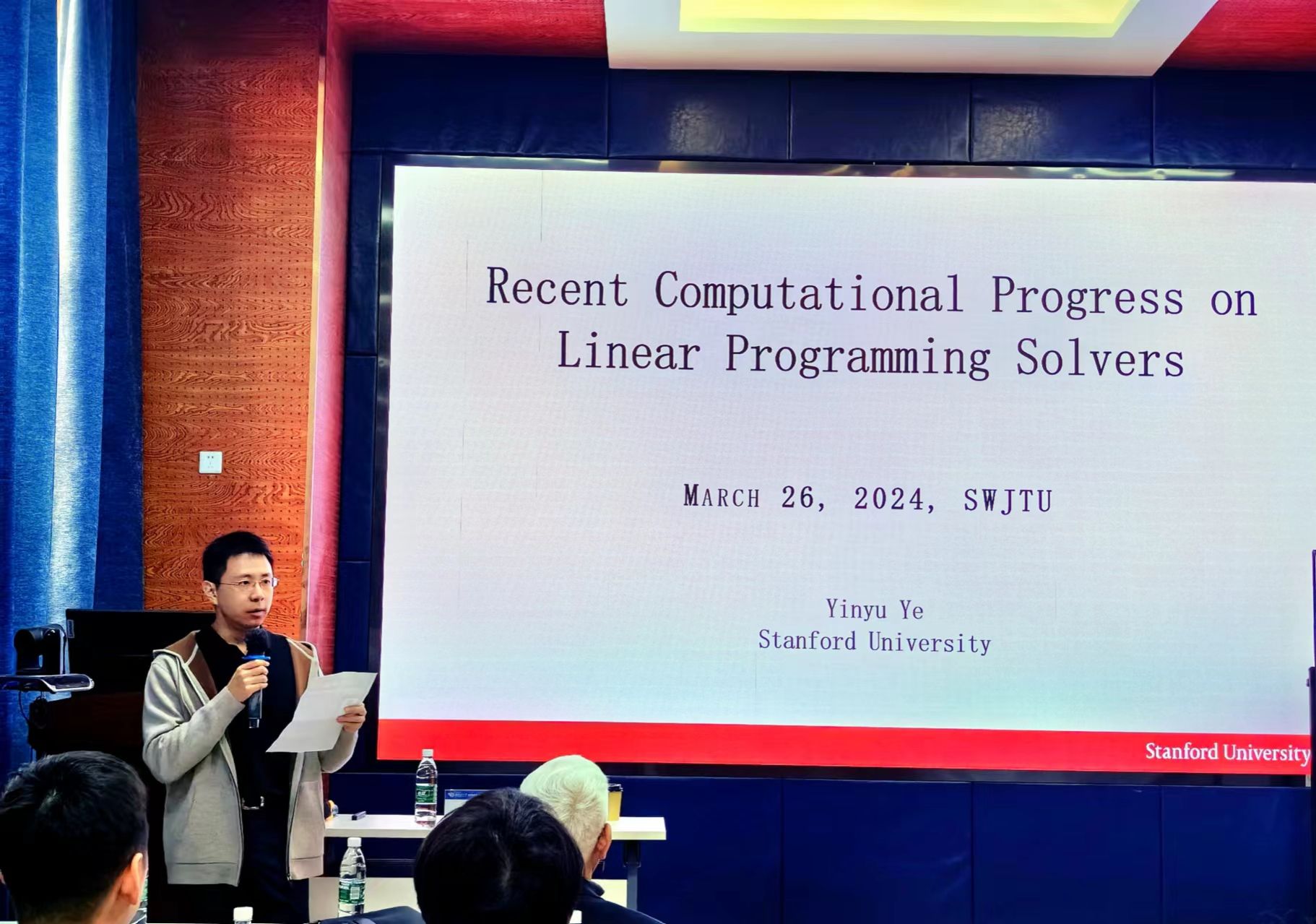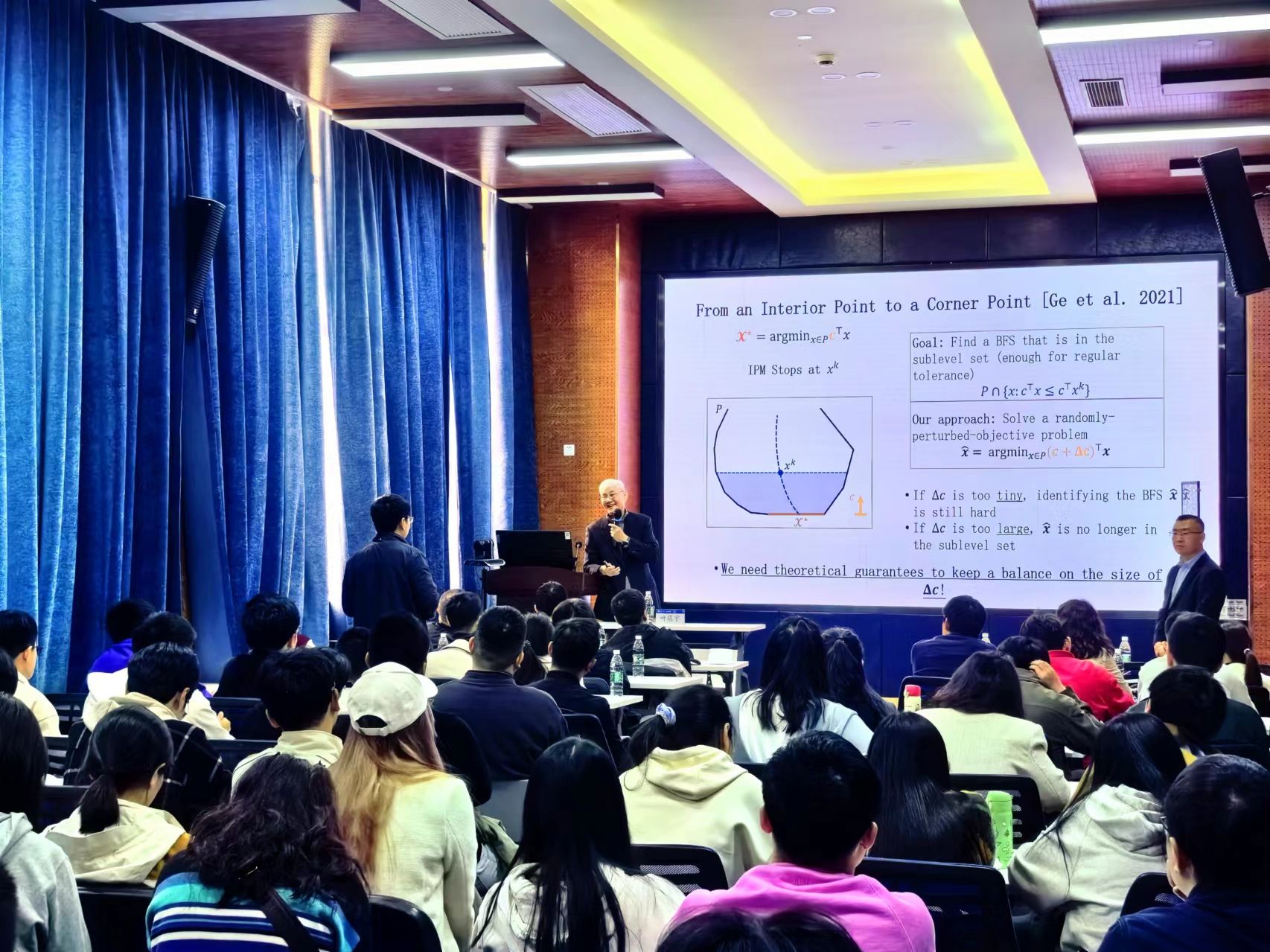 2024年3月26日,美国斯坦福大学叶荫宇教授应邀在bat365官网登录入口为我院师生分享题为“Recent Computational Progress on Linear Programming Solvers”的学术讲座。本次学术活动由学院院长韩科教授主持,学院教师及研究生聆听了本次讲座。