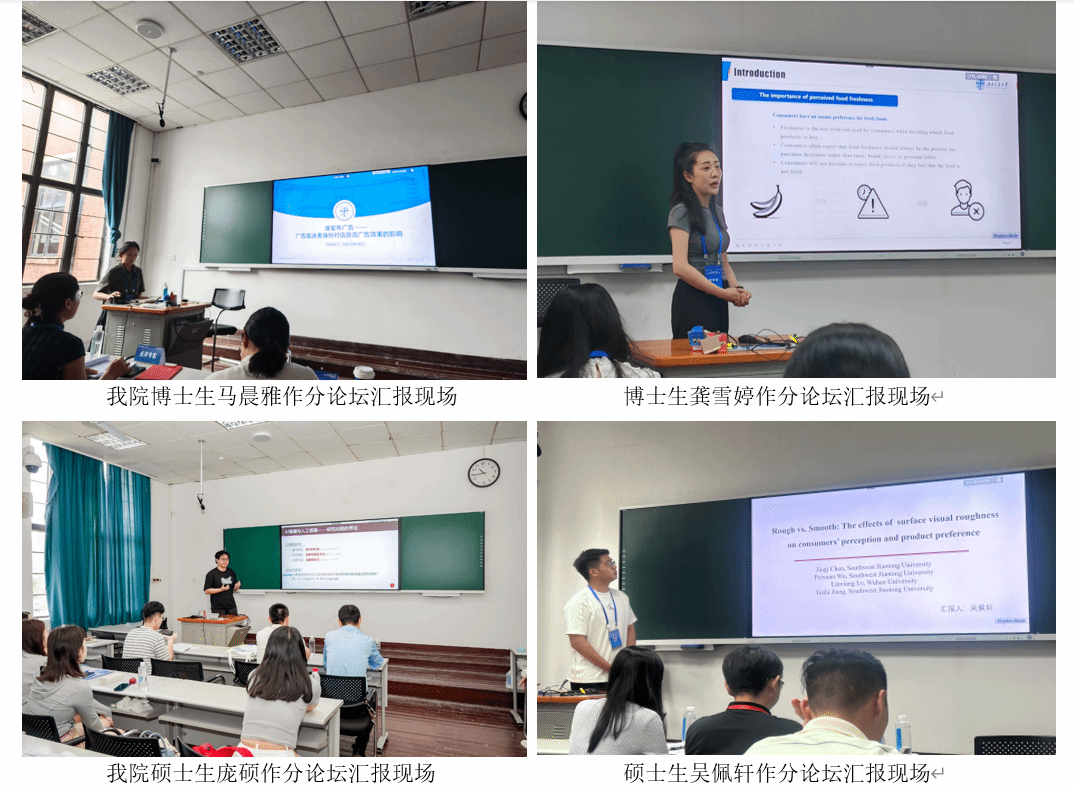 另外,我院研究生围绕“消费者心理与行为、广告传播与新媒体营销、新技术营销”等前沿主题共展开了10场会议报告分享,充分展示了我院研究生在市场营销领域的深厚学术功底和创新思维。