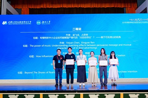 博士生别永越、硕士生唐巾力与孙玮潞的论文《Beyond The Shores of Reality: How Virtual Influencer Increase Luxury Perception and Purchase Intention》荣获会议论文二等奖,该研究聚焦于虚拟网红如何提升消费者对产品的奢侈感知及购买意愿,为数字营销与消费者行为学的研究注入了新活力。