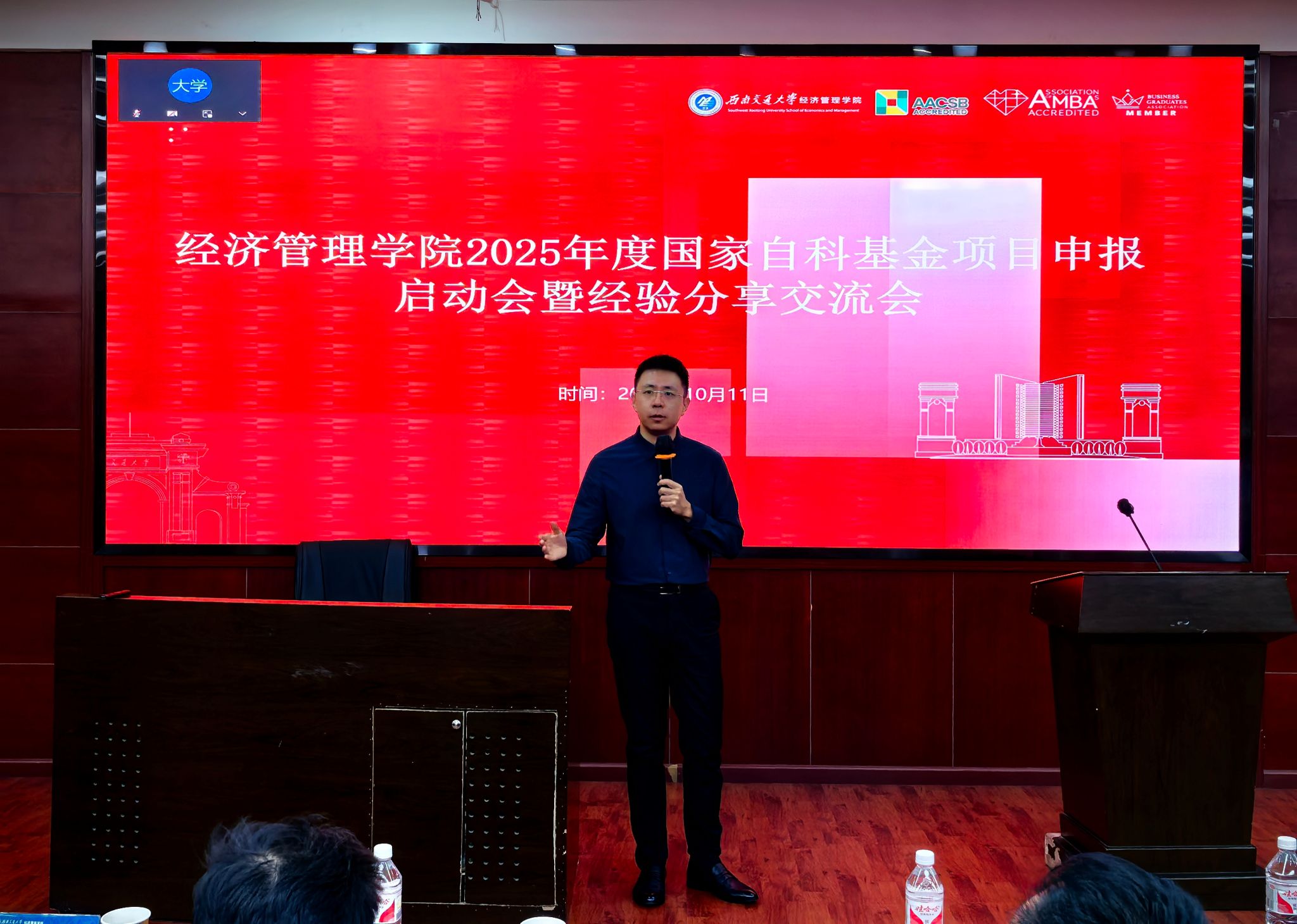 2024年10月11日,bat365官网登录入口在零号楼0228会议室召开了2025年度国家自科基金项目申报启动会暨经验分享交流会。学院特邀科学技术发展研究院副院长马霖进行申报动员,会计学系助理教授刘雨柔、信息系统与运营管理系教授李妍峰分享了申报自科青年基金和面上基金的经验。会议由bat365官网登录入口副院长马锋主持,学院党委书记郭强、院长韩科、副院长李良、副院长聂佳佳、部分学系主任和副主任以及全院70余名师生参加了此次会议。