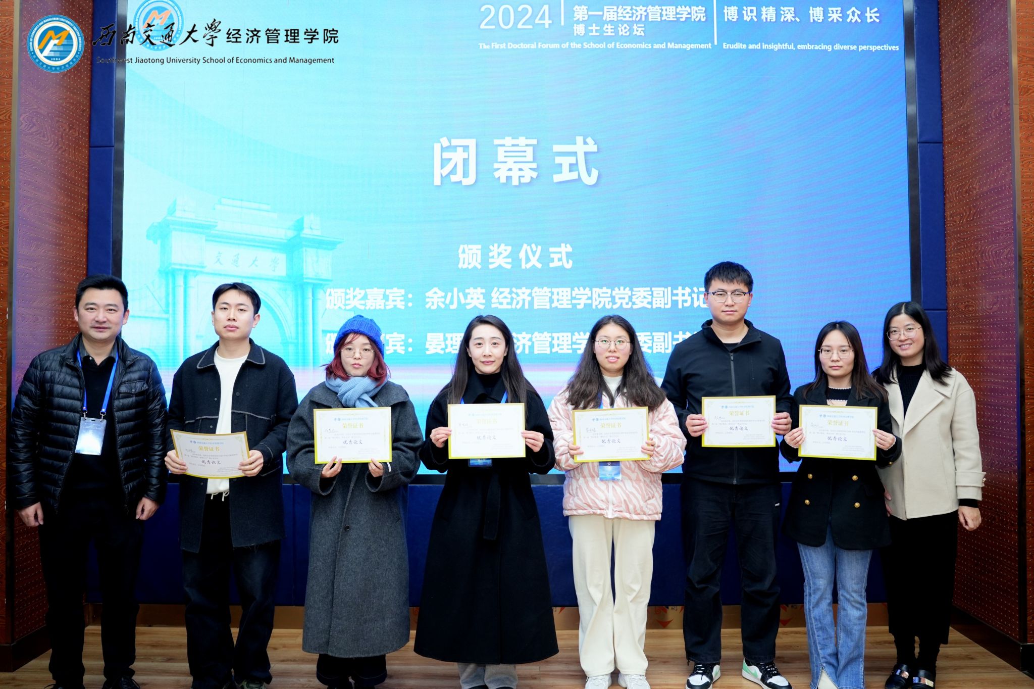 分会场议程后,此次论坛会进入尾声。闭幕式中,bat365官网登录入口党委副书记余小英、晏理斌为本次论坛优秀博士生代表颁奖。