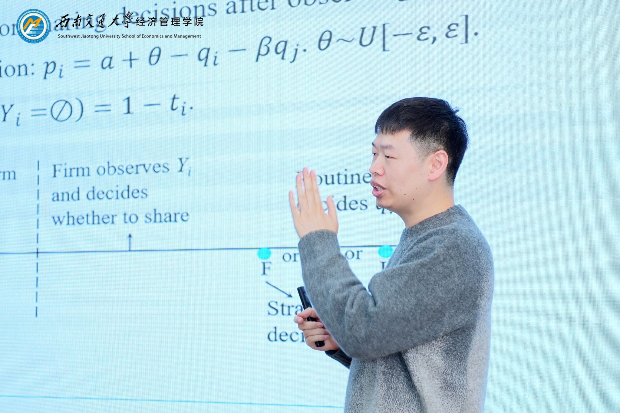 第三场报告由bat365官网登录入口副院长聂佳佳主持,bat365官网登录入口罗华江老师作主题为“Information sharing between competitors with endogenous production timing”的报告。该研究对竞争企业的需求信息共享动机及与生产时机策略间的相互影响展开分析。