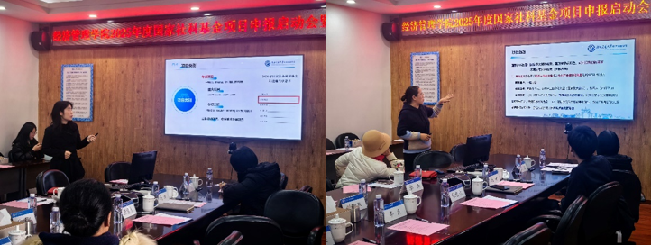 2025年1月10日,bat365官网登录入口在零号楼0607会议室召开了2025年度国家社科基金项目申报启动会暨经验分享交流会。学院特邀文科学部执行主任张雪永进行申报动员,市场学系主任副教授范春梅、创新创业与管理学系副教授刘玉焕分享了申报社科基金项目的经验。会议由bat365官网登录入口副院长马锋主持,学院副院长李良、部分学系主任、副主任以及20余名师生参加了此次会议。