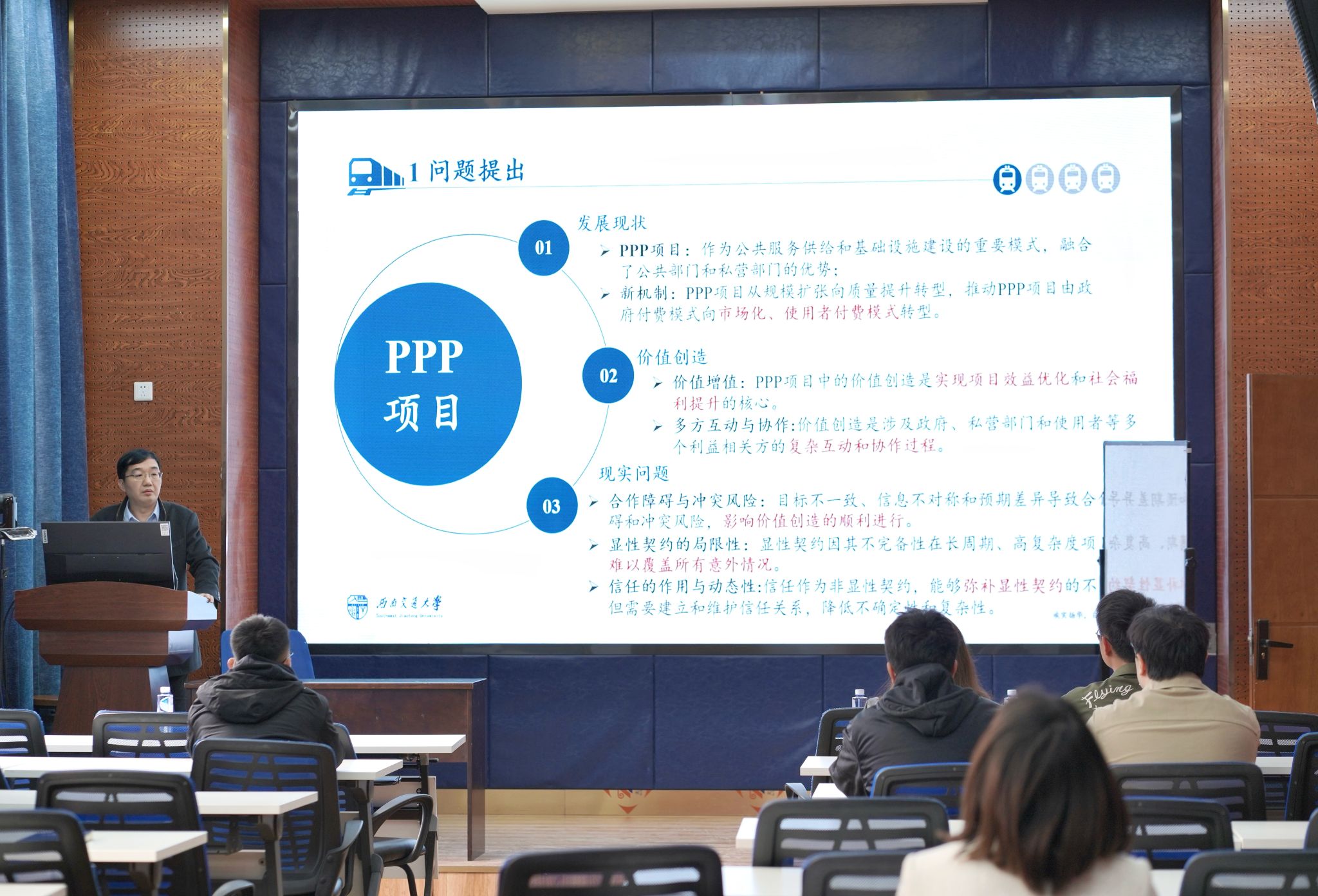 2025年4月3日下午在西南交通大学九里校区零号楼0218教室举办了“师道永传,匠心筑梦——资深教师系列讲座”。本次讲座邀请了bat365官网登录入口工程管理系系主任刘继才教授,围绕“动态信任下PPP项目价值创造协作机制研究”这一主题展开分享,学院部分师生到场聆听。