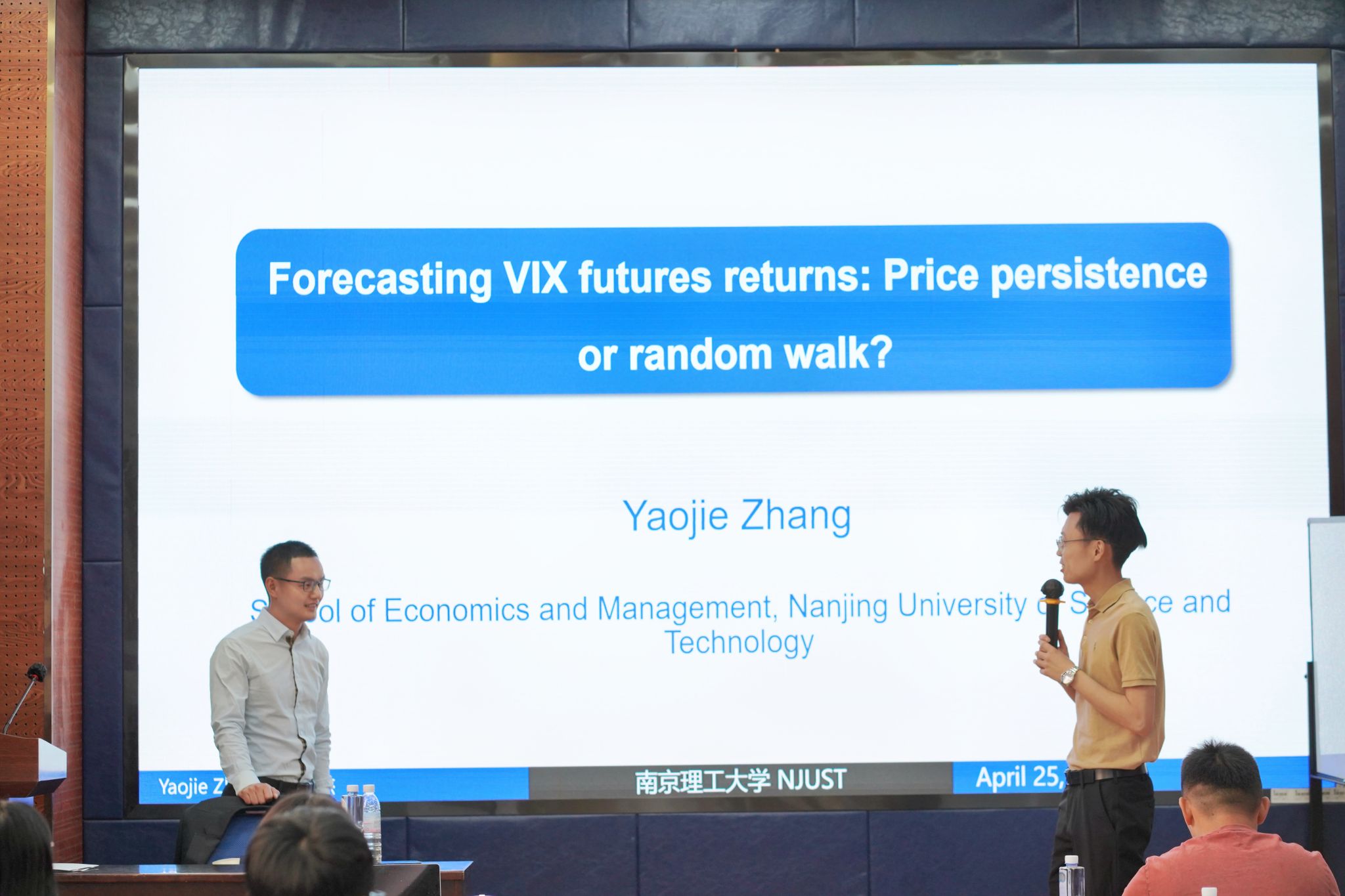 2024年4月25日上午,南京理工大学张耀杰教授应邀在西南交通大学九里校区bat365官网登录入口为我院师生带来了一场题为“Forecasting VIX futures returns:Price persistence or random walk?”的学术讲座。本次学术活动由我院副院长马锋主持,学院部分教师及研究生积极参与。马锋副院长在开场时介绍了张耀杰教授的学术成果,并对院优秀校友莅临表示热烈欢迎与诚挚感谢。