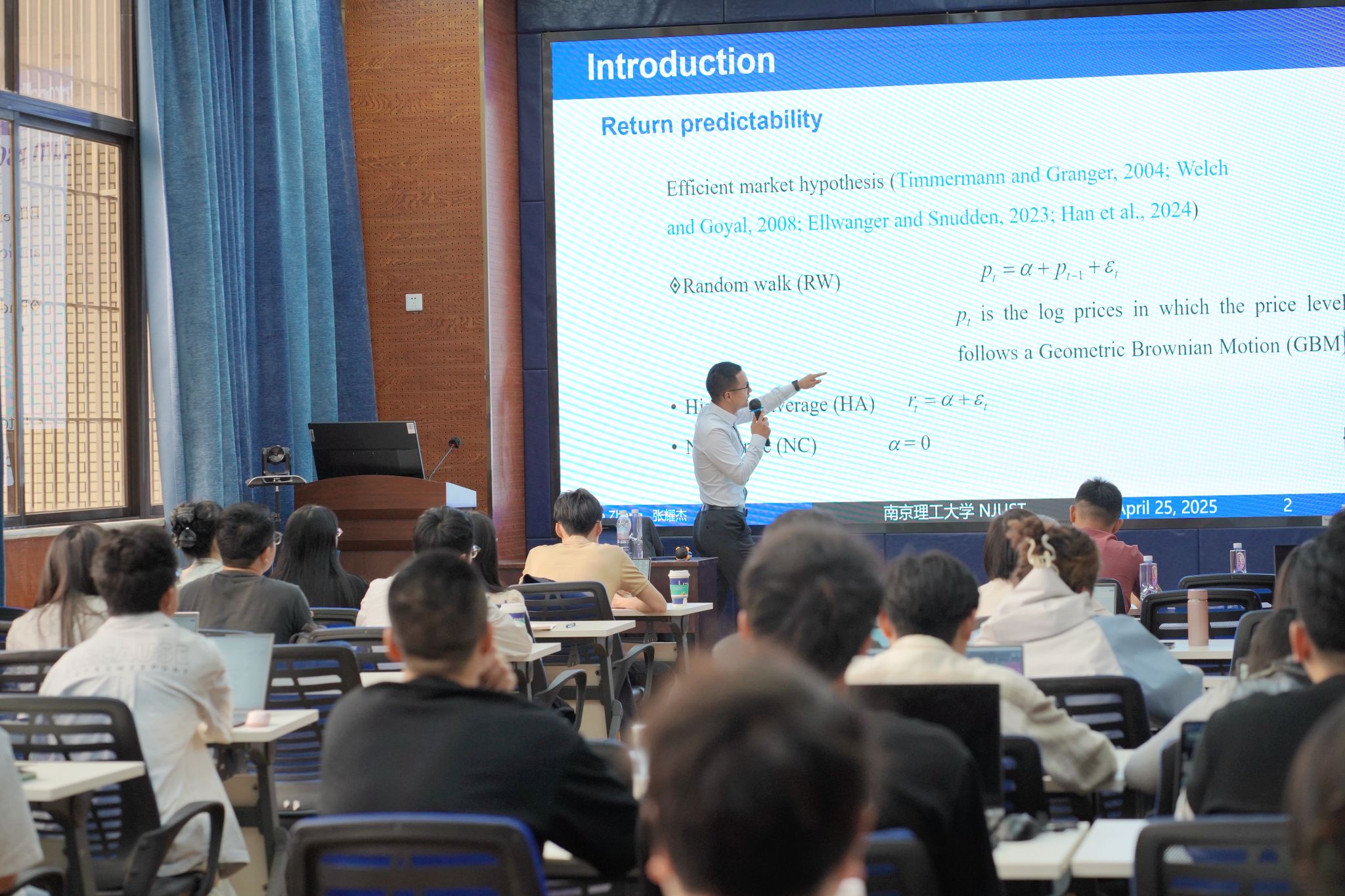 张教授详细阐述了该研究的设计与实施过程。他深入讲解了理论模型的推导、AR模型的应用、实证分析过程及其结果,以及稳健性检验等。研究结果显示,当VIX期货价格的自相关性较低时,模型预测的稳健性反而显著提升。这一发现与传统认知相悖,为期货市场的波动率研究提供了全新的理论视角。