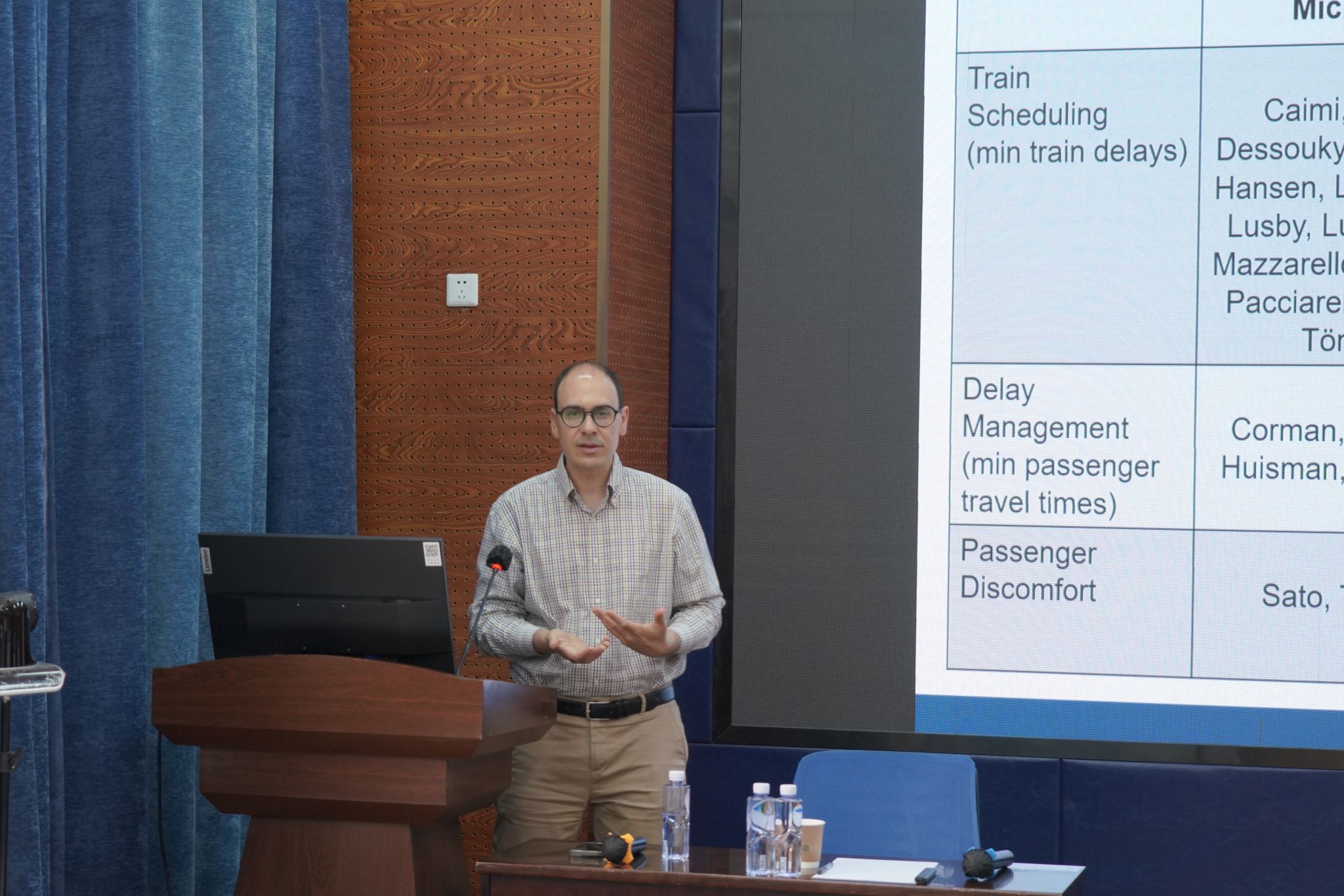 D'Ariano教授以铁路交通管理中的核心挑战——如何在扰动运行下,通过实时调整控制策略,平衡列车准点率与乘客服务质量为切入点,系统阐述了他的研究方向和研究方法。此外,他通过介绍实际铁路网络的案例,量化分析了列车延误与乘客出行时间之间的权衡关系,为复杂路网下的协同决策提供了科学依据。