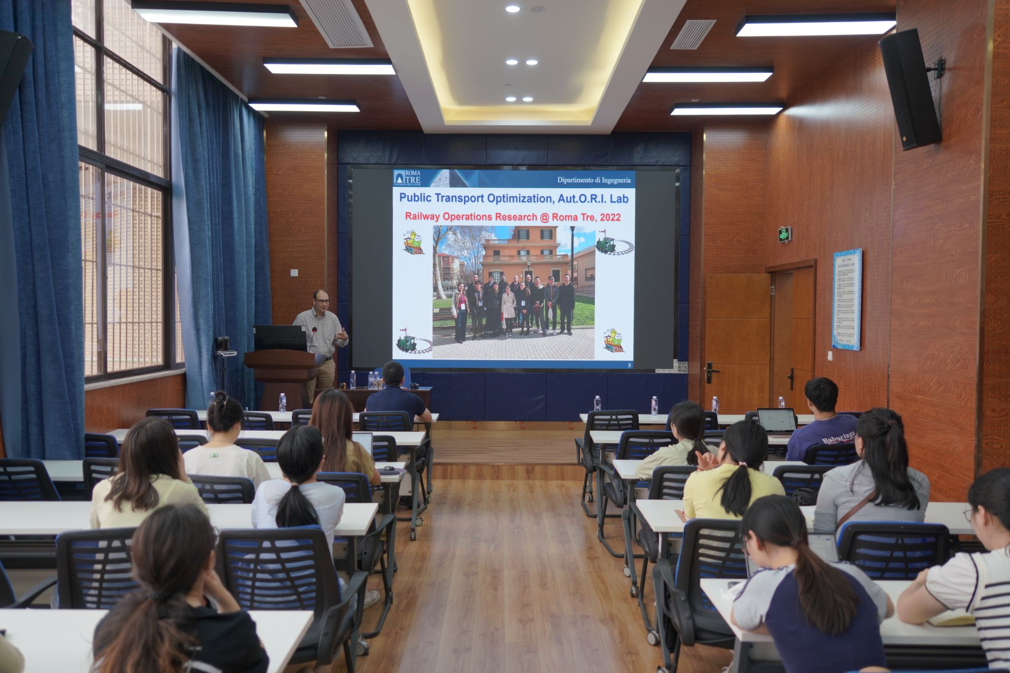 2025年5月8日上午,罗马第三大学Andrea D'Ariano教授应邀为我院师生作题为“Train Scheduling Optimization with Consideration of Passenger Flows During Disturbed Operations”的学术讲座。本次讲座由学院院长韩科主持,学院师生积极参与。院长韩科首先对Andrea D'Ariano教授的学术背景进行了简要介绍,并代表bat365官网登录入口对D'Ariano教授致以热烈欢迎和诚挚感谢。