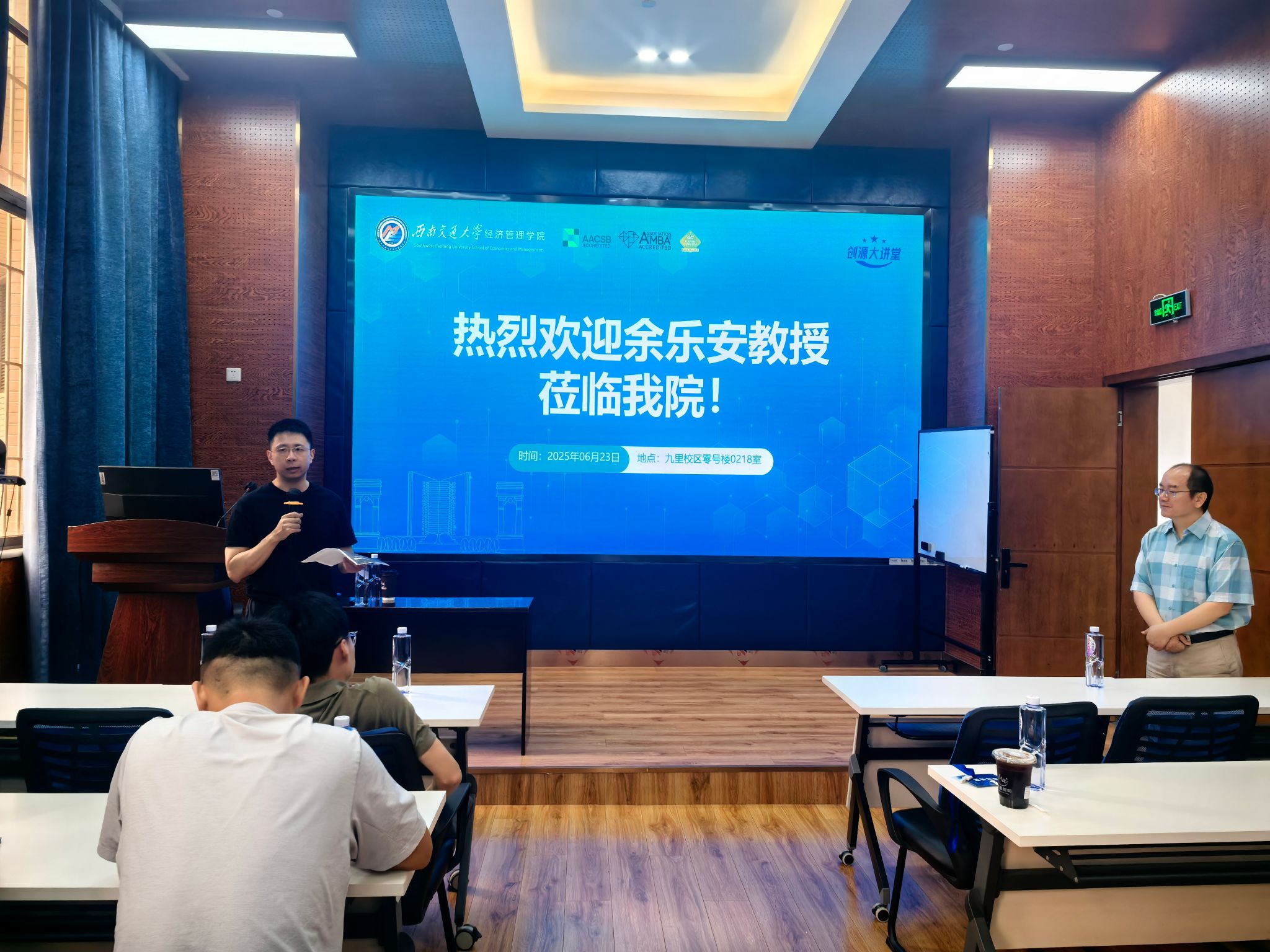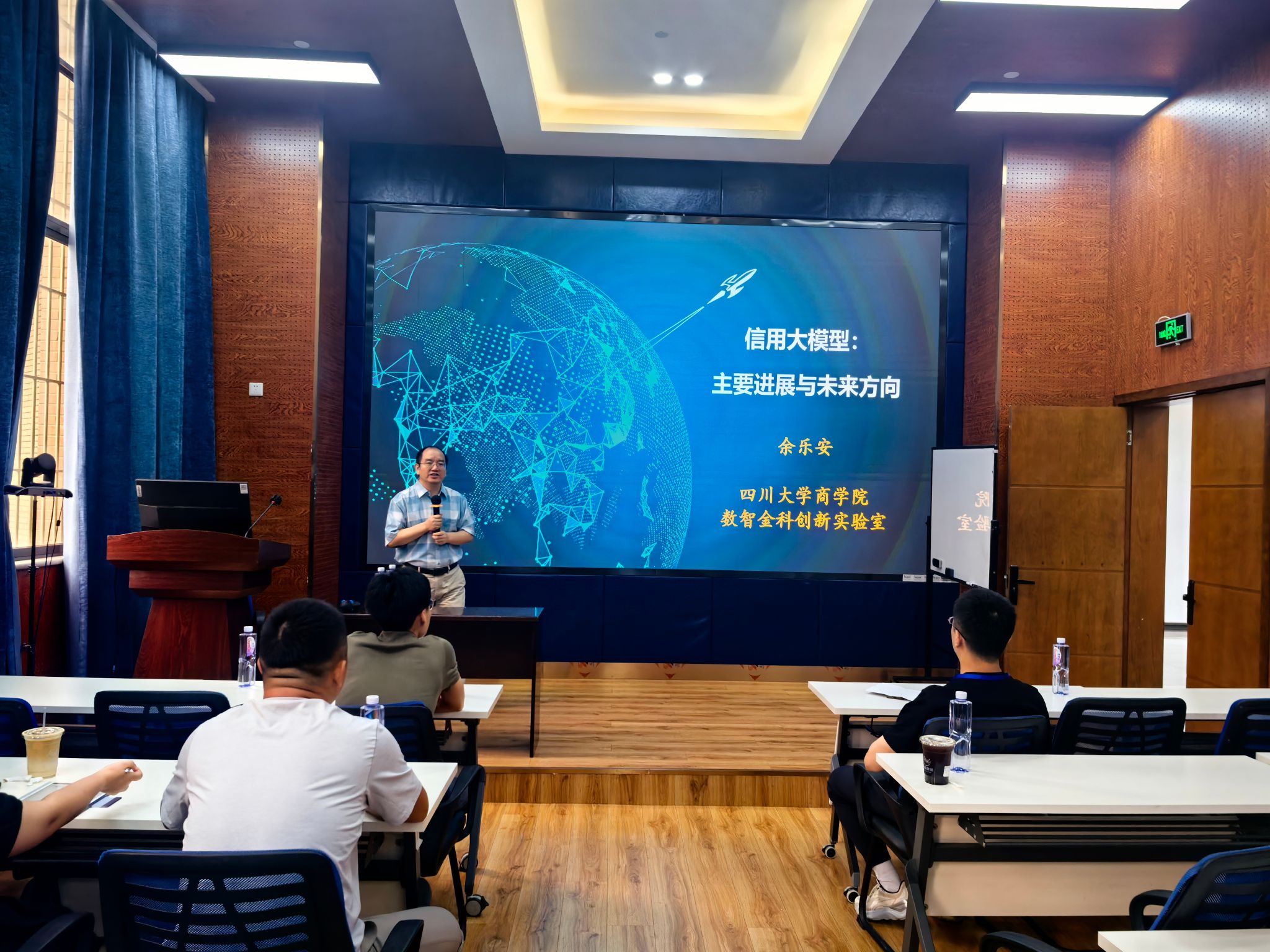 2025年6月23日下午,四川大学余乐安教授应邀莅临我院,做题为“信用大模型:主要进展与未来方向”的学术讲座。本次讲座由bat365官网登录入口院长韩科教授主持,学院部分教师及研究生积极参加,现场学术氛围浓厚。讲座开始前,韩科院长简要介绍了余乐安教授的学术背景与研究成果,对余教授的到来表示热烈欢迎和诚挚感谢。