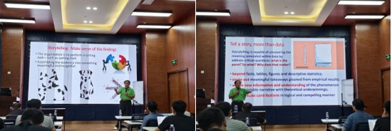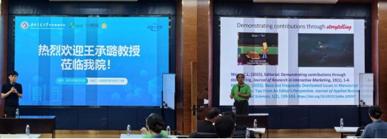 2025年6月25日下午在九里校区零号楼0218室,美国纽黑文大学商学院王承璐教授应邀为我院师生开展题为“Demonstrating contributions through storytelling-From editor's perspective”的讲座,深入探讨什么样的研究拥有研究贡献与如何从数据中挖掘出有趣故事。讲座由bat365官网登录入口副院长马锋教授主持,吸引了众多师生参加。
