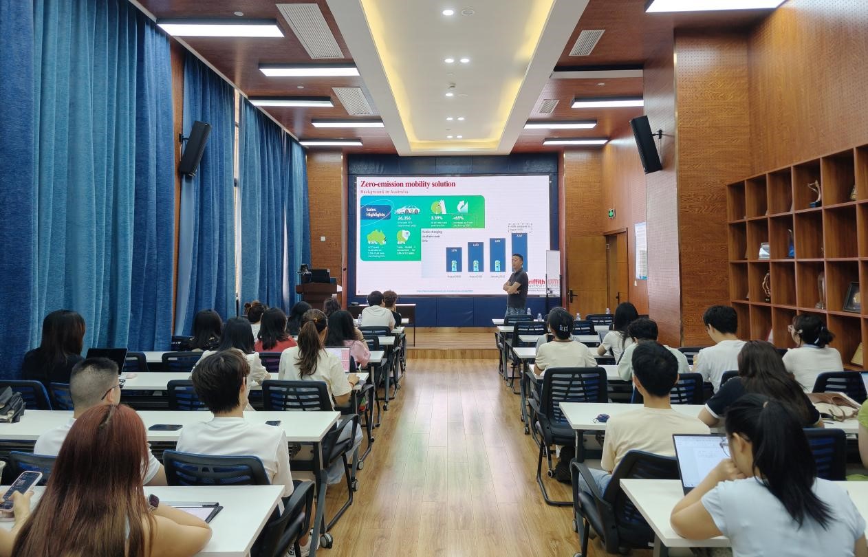 杜波老师首先介绍了格里菲斯商学院及其研究团队,并分析了澳大利亚电动公交车的发展现状,阐述了当前电池电动公交车存在的续航里程有限问题。随后其指出充电技术的不断进步使得快速充电技术成为解决电池电动公交车续航里程有限问题的一个有前景的方案,该项技术通过在公交车行驶途中提供及时充电得以实现。
