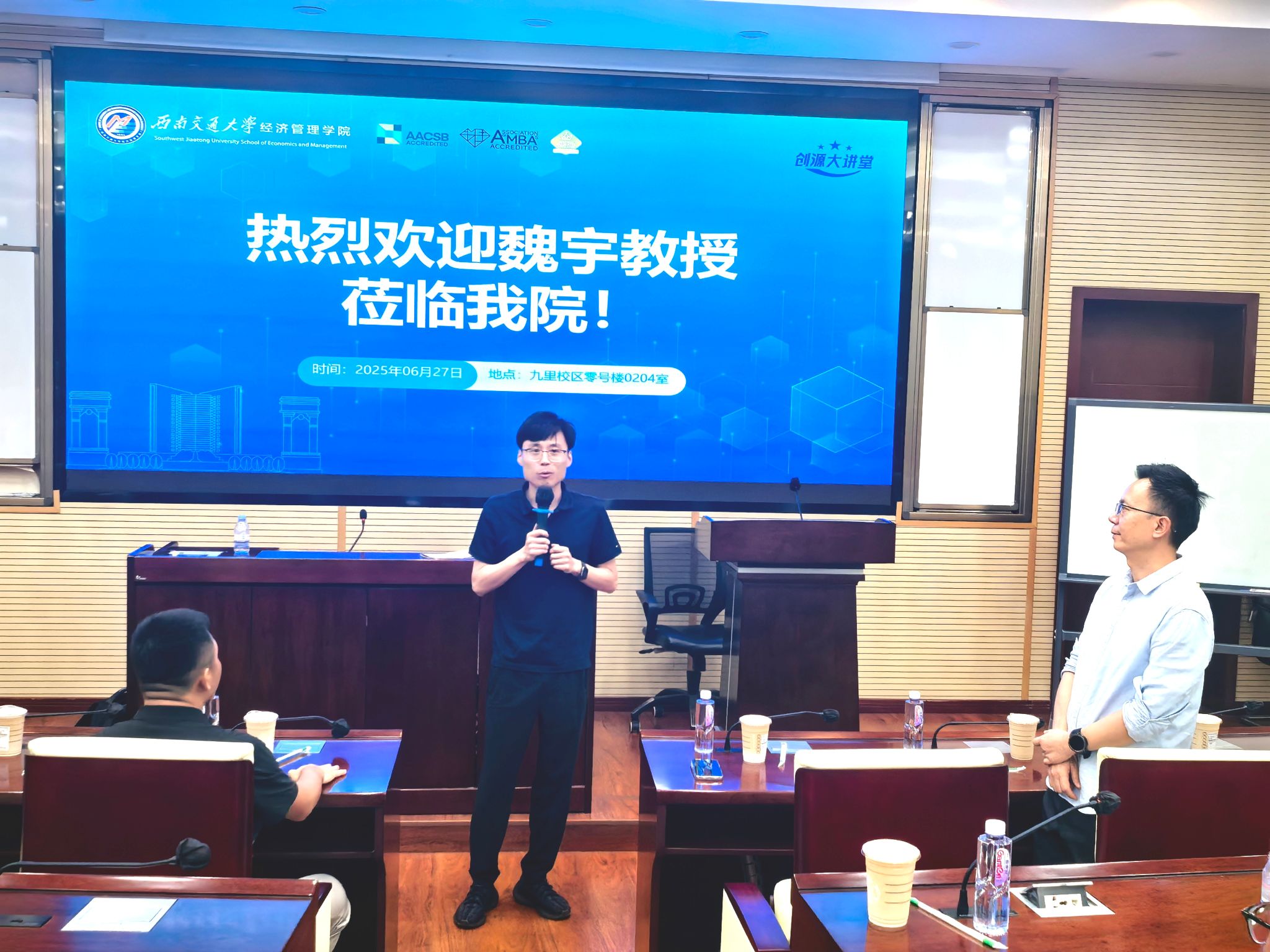 2025年6月27日下午2点,学院特邀云南财经大学金融学院魏宇教授为我院师生带来了一场题为“Are brown stocks valuable for green stocks? Evidence from China”的学术讲座。本次学术活动由bat365官网登录入口副院长马锋教授主持,学院部分教师及研究生参加了此次活动。马锋副院长介绍了魏宇教授的学术背景与成就,并代表学院对魏宇教授表示热烈的欢迎与诚挚的感谢。