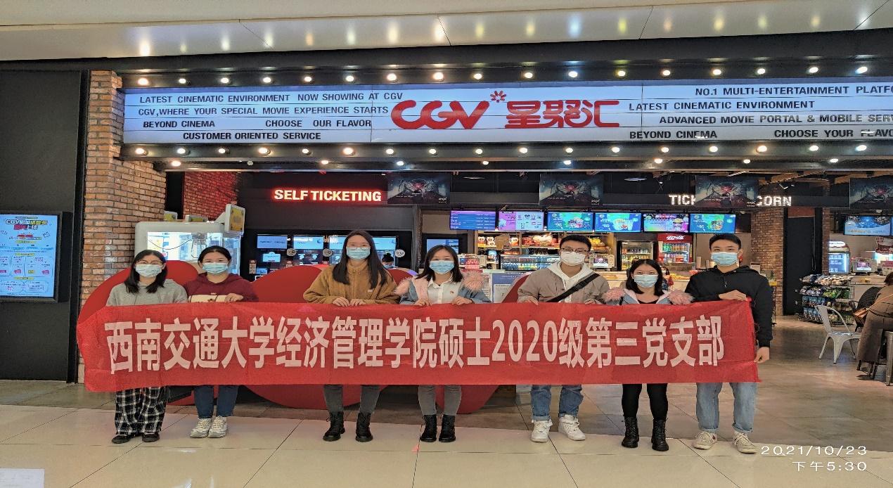 为庆祝中国共产党成立100周年,中国人民解放军建军94周年,硕士2020级第三党支部于20211023日下午组织了《长津湖》观影活动,重温红色历程,感受爱国情怀。