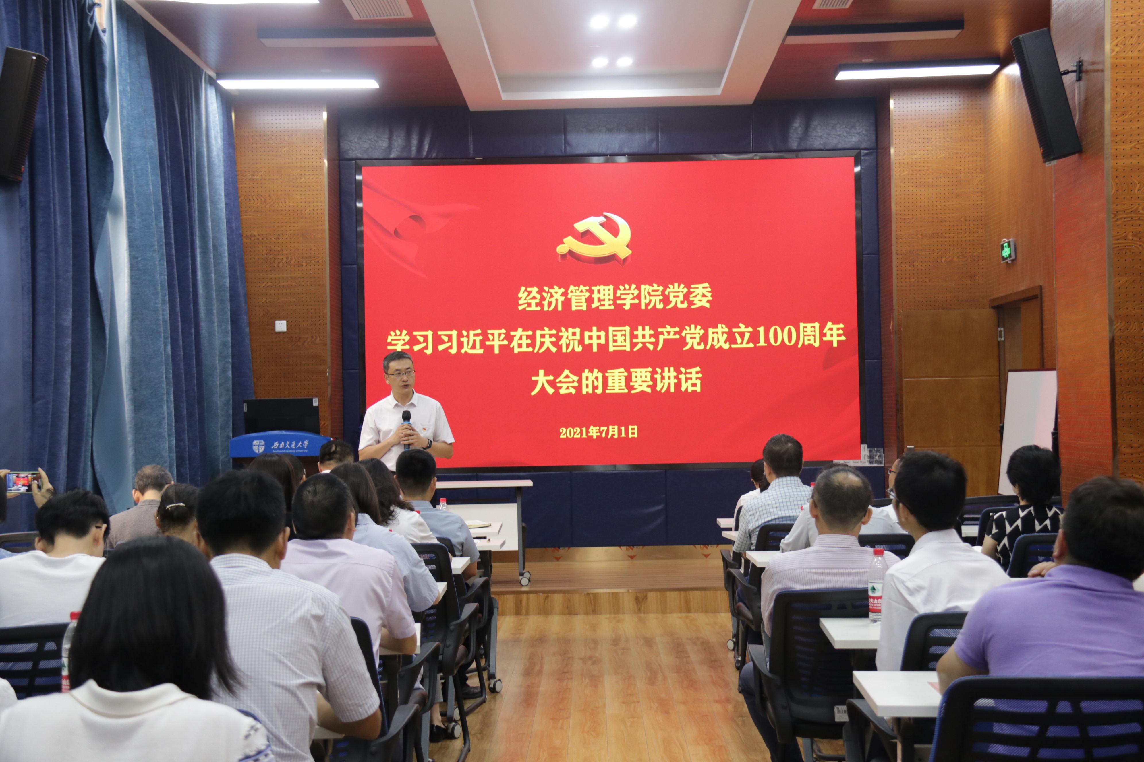 表彰会后,学院党委领导班子成员和与会党支部书记、支委集体学习了习近平总书记在庆祝中国共产党成立100周年大会上的讲话。
