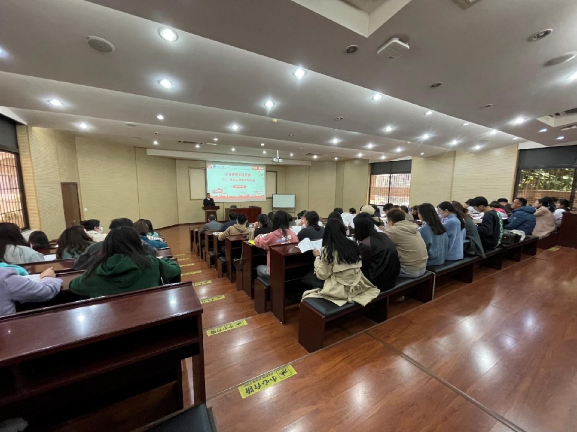 学院党委副书记杨宏毅从四个方面向各党支部委员们系统讲解了如何做好党支部工作。他首先详细解读了党支部的设置,支委会的选举、任期、流程以及各个党支部委员职责等内容。他强调,党支部书记要高度重视自己的带头作用,要带领本支部党员扎实开展好各项工作和活动。接着,他对党支部“三会一课”制度进行了强调,对党支部开展的各种活动类别进行了详细的介绍,加深了党支部委员们特别是2021级新生党支部委员们对党建工作的理解和认识。在第三部分,杨宏毅按照《中国共产党发展党员工作细则(试行)》系统介绍了发展党员的流程及注意事项,并要求党支部委员要进一步明确自己的工作职责,树立好工作信心,认真学习党支部各项工作条例及工作要求,严格把好发展党员的标准和流程,注意党员发展的各个时间节点,按要求及时做好归档等工作。最后,杨宏毅举例说明了党支部工作和发展党员过程中常见的各种问题,并现场对各种党建工作疑题进行了解答。