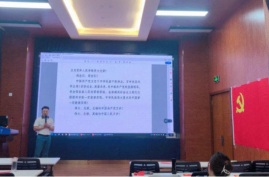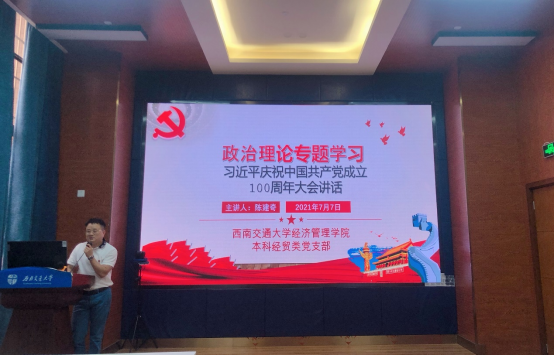 本科经贸类党支部于7月7日在J0218教室举办了学习习近平总书记在庆祝中国共产党成立100周年大会讲话——bat365官网登录入口本科经贸类党支部政治理论专题学习,由党支部书记陈建奇主讲,支部的全体党员及部分积极分子参加了专题学习会议。