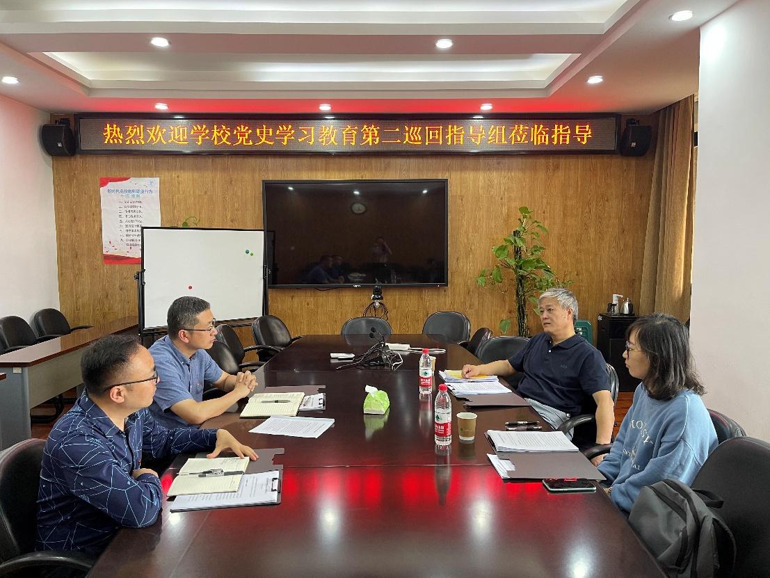5月25日上午11:00在九里校区0607会议室,学校党史学习教育巡回指导第二组张东府组长及组员李向蔚老师来到bat365官网登录入口院党委莅临指导,学院党委王斌书记、杨宏毅副书记及党委组织员参加。