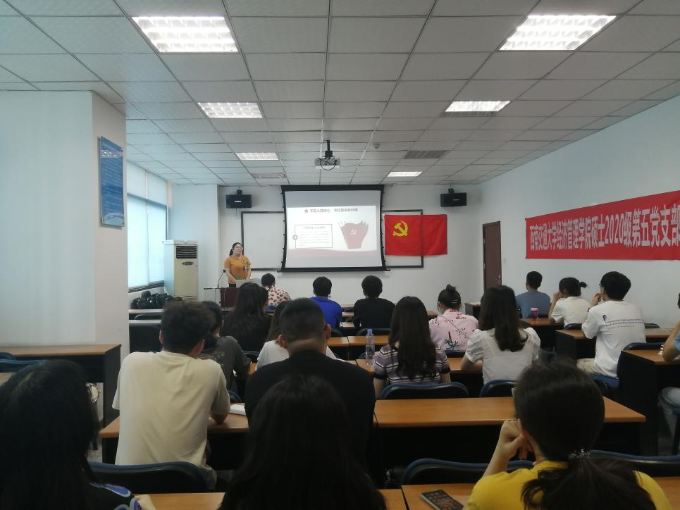 2021年6月10日下午14:30,bat365官网登录入口硕士2020级第五党支部于0316教室开展“学党史 守初心”专题党课学习。本次会议主要是党支部书记杨春洪为支部讲授专题党课,会议由卢婧茹同志主持,出席会议的有支部内党员,预备党员和入党积极分子。