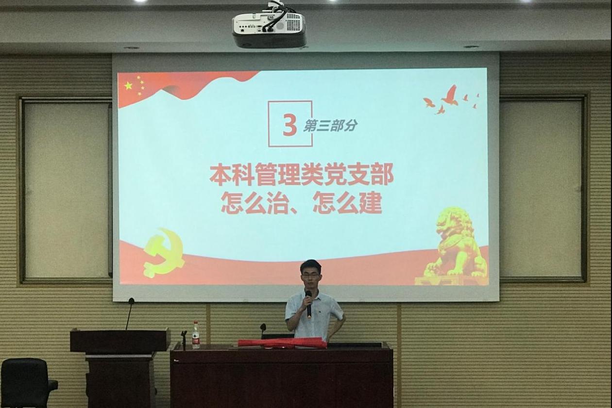 在学习完有关规章条例后,苏扬老师从支部组织建设概况、引领支部全面发展、构建人才培养体系三方面向在场的全体成员,特别是20级新一批入党积极分子系统详细地介绍了我们自己所在的党支部——bat365官网登录入口本科管理类党支部的治理体系和措施做法。
