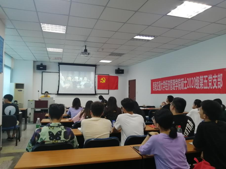2021年5月14日下午16:00,bat365官网登录入口硕士2020级第五党支部开展党史、新中国史专题学习。本次会议由两部分组成:学院党委书记王斌为支部讲授“从百年大党迈向百年强党”主题党课、支部成员何汶昱带领支部成员学习新中国史。出席会议的有学院党委书记王斌及支部内党员,预备党员和积极分子。