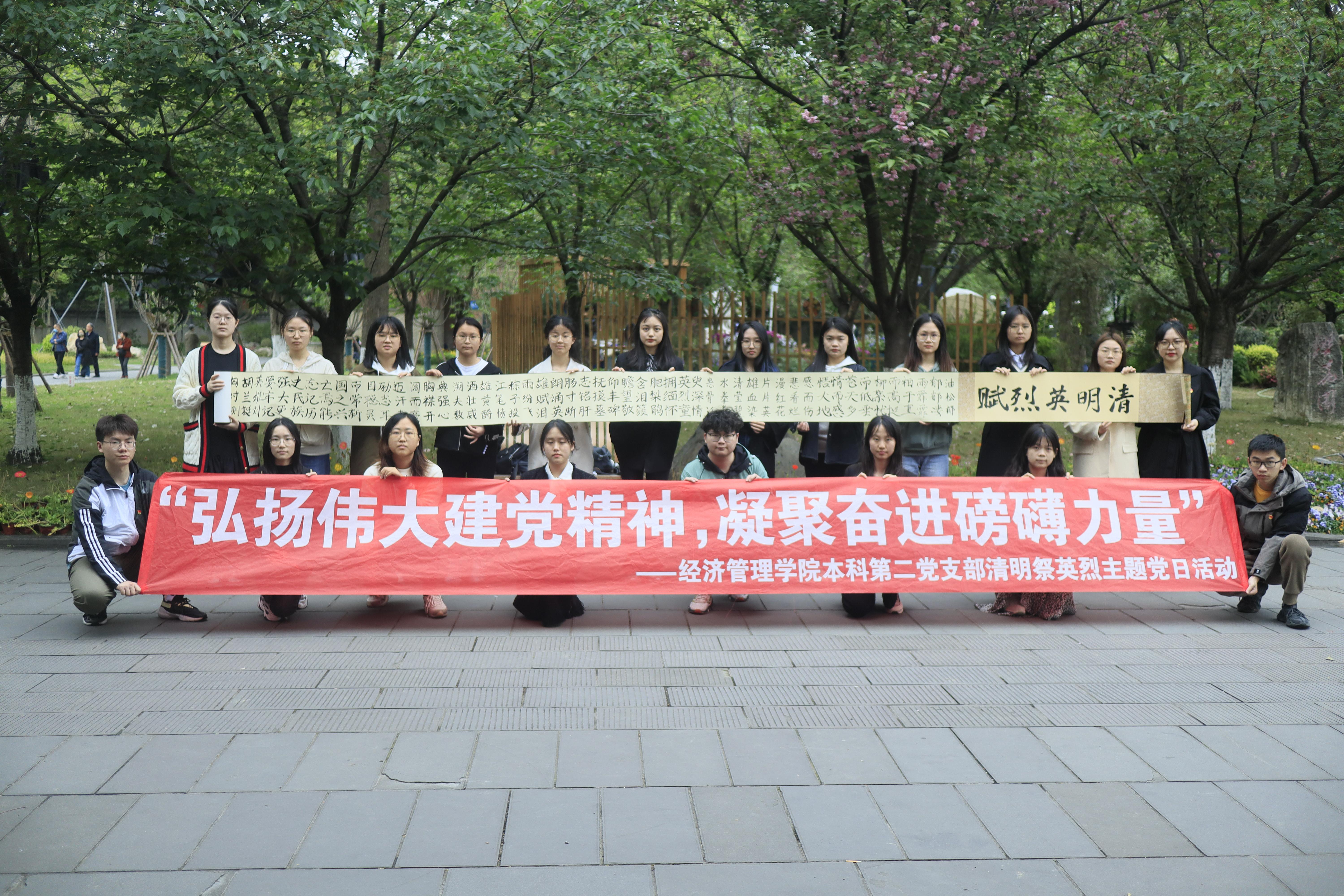 清明时节,芳草萋萋。在古时,人们扫墓祭祖,以寄哀思,以怀先长。在今天,“清明”不仅是遥寄相思,缅怀先祖的日子,更是追思英烈忠魂,回首国家艰辛来路的重要载体。为深刻缅怀革命先烈,赓续红色血脉,汇聚现代化建设磅礴力量,4月5日,bat365官网登录入口本科第二党支部组织党员和入党积极分子前往成都十二桥烈士墓开展“弘扬伟大建党精神,凝聚奋进磅礴力量”清明祭英烈主题党日活动。