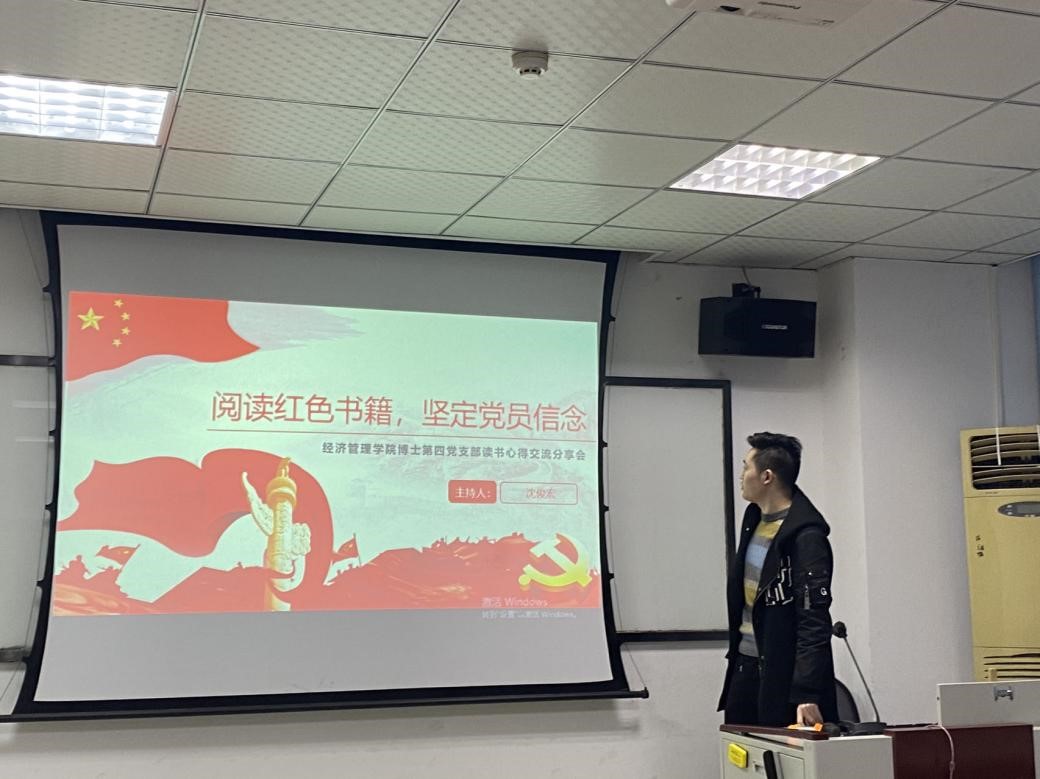 bat365官网登录入口博士研究生第四党支部于2023年4月24日晚7点在九里校区信息楼0304教室开展题为“阅读红色书籍,坚定党员信念”读书心得交流分享会。首先,党支部书记沈俊宏同志介绍了本次读书心得交流分享会活动,说明了开展此次活动的背景、目的以及安排。