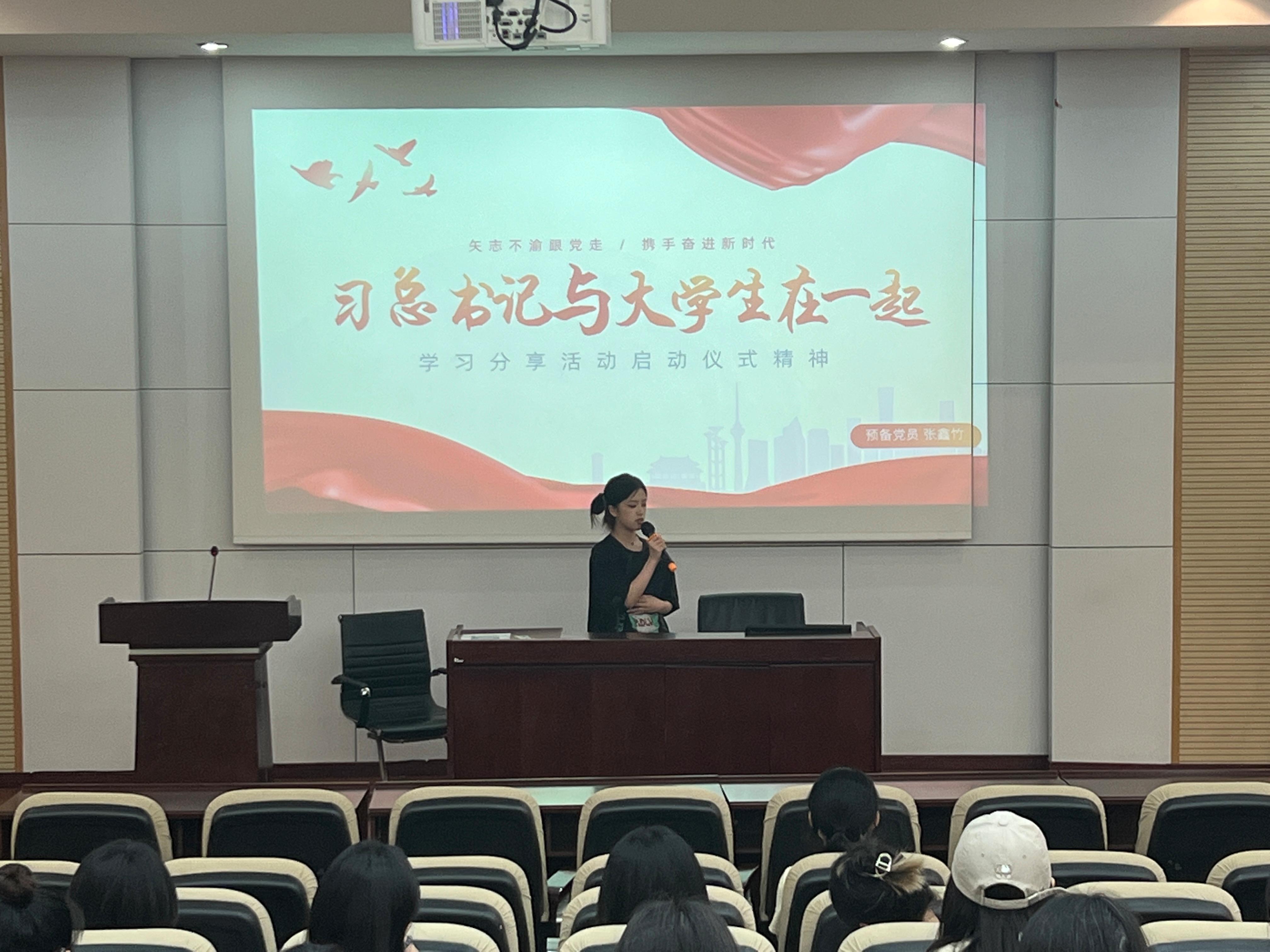 此外,白芯宇同志还为大家分享了观看学习“传承红色基因,争当青年先锋高校”宣讲会(第二批次)的学习体会。她表示虽然四位宣讲人来自不同的时代,但他们从不同维度给我们带来了不一样的启发。她将此次宣讲的主题归结为“扎根”二字。当代青年只要肯踏踏实实扎根于自己的理想志向,就可以把自己的人生活得精彩。