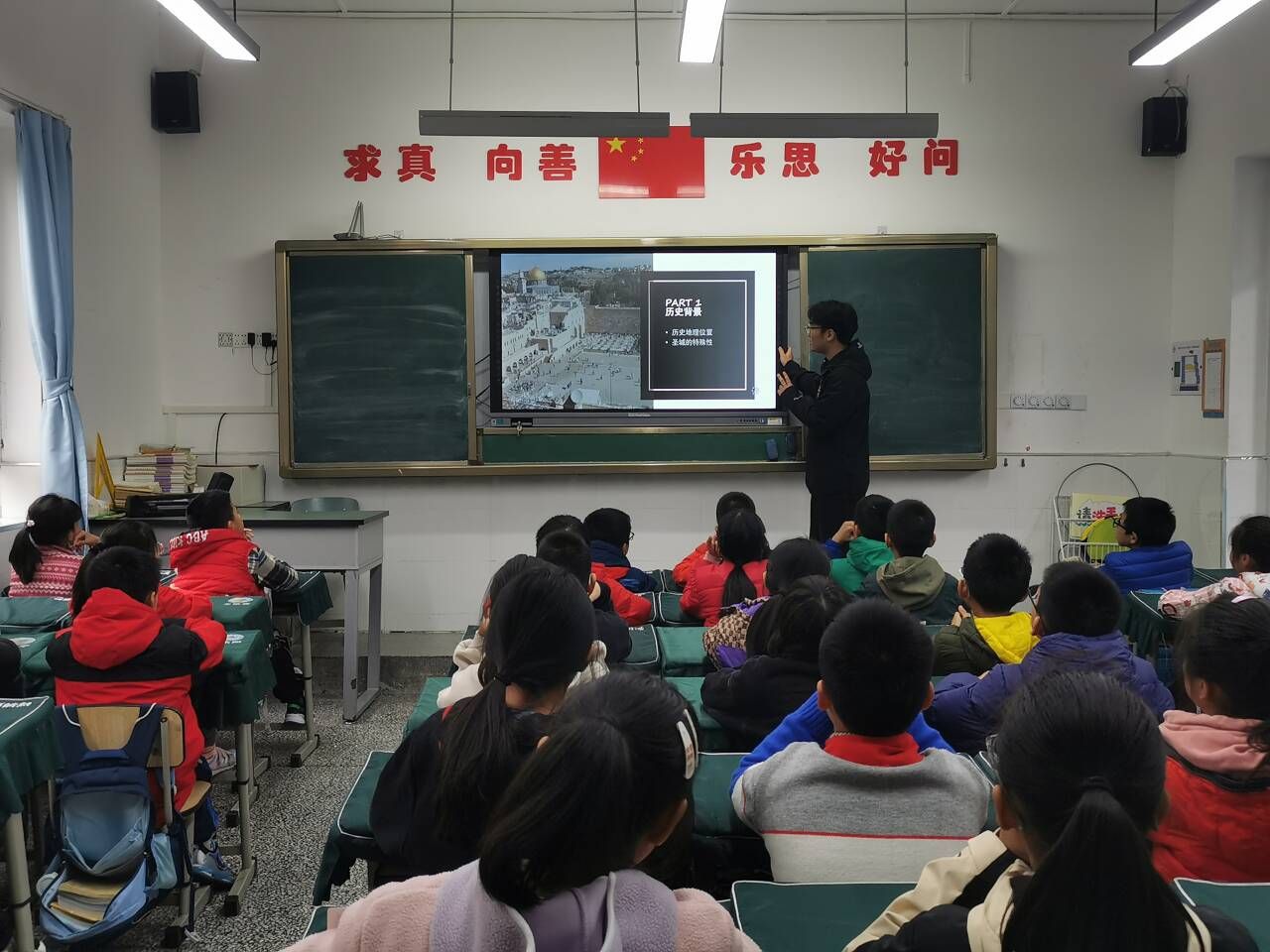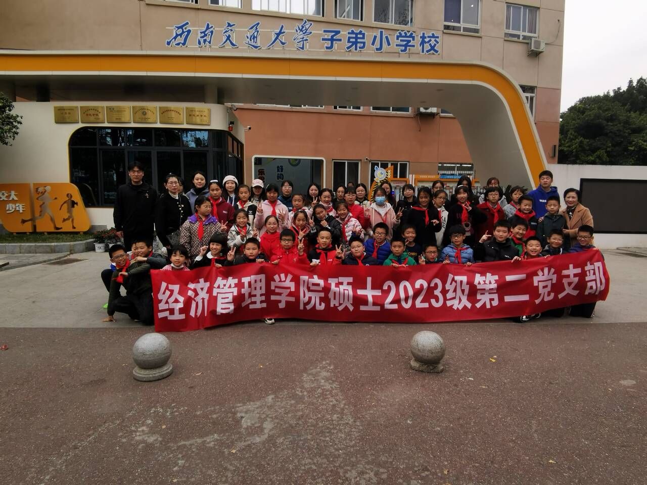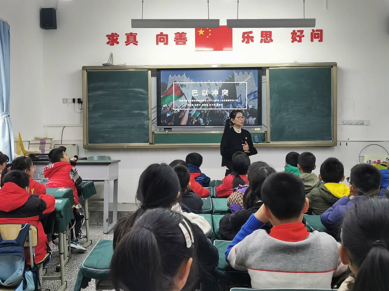习近平总书记在党的二十大报告中强调:“前进道路上,全党要坚持全心全意为人民服务的根本宗旨,树牢群众观点,贯彻群众路线,尊重人民首创精神,坚持一切为了人民、一切依靠人民,从群众中来、到群众中去,始终保持同人民群众的血肉联系,始终接受人民批评和监督,始终同人民同呼吸、共命运、心连心。”为响应习近平总书记的重要指示,让党员同志积极为群众服务,2023年12月1日,bat365官网登录入口硕士2023级第二党支部书记贾佳老师带着硕士2023级第二党支部的党员们来到了西南交通大学子弟小学,就同学们近日关心的国际热点问题进行了相关知识的讲解。