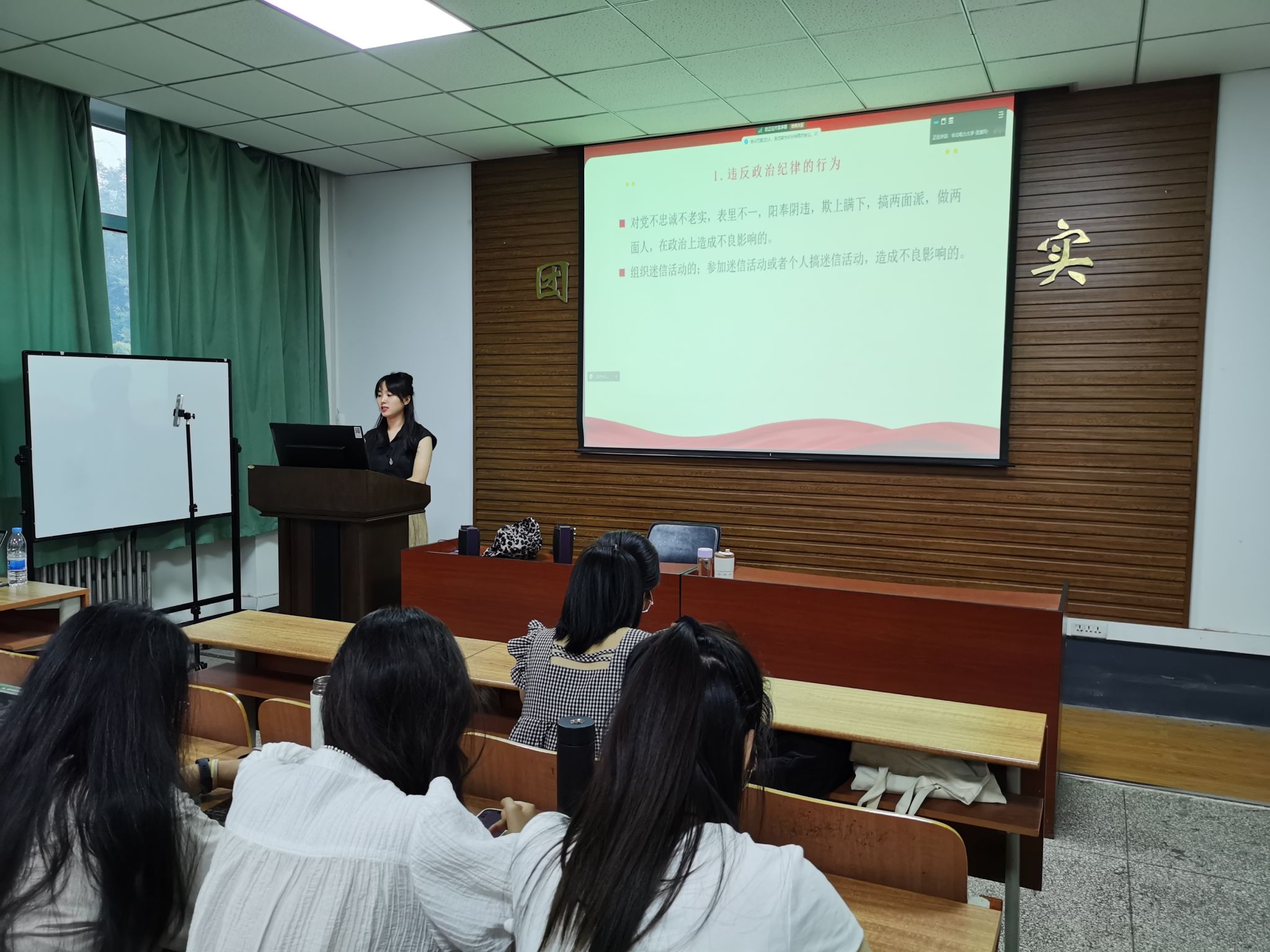 我院硕士2023级第二党支部青年委员张志辉领学《中国共产党纪律处分条例》的学习内容,对于条例的主要修订内容进行了展示和分析,对新增条款、处理方式和应用场景的规范进行了讲解,加深了党员同志对党纪党规的理解和认识。