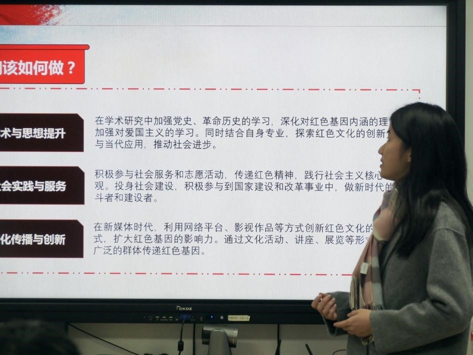 2024年12月8日下午14:00,为进一步深入学习贯彻习近平总书记系列重要讲话精神,进一步推动高校思想政治工作和党的建设工作,bat365官网登录入口研究生会临时党支部于0411教室开展了“传承红色基因、厚植爱国情怀”专题学习活动。