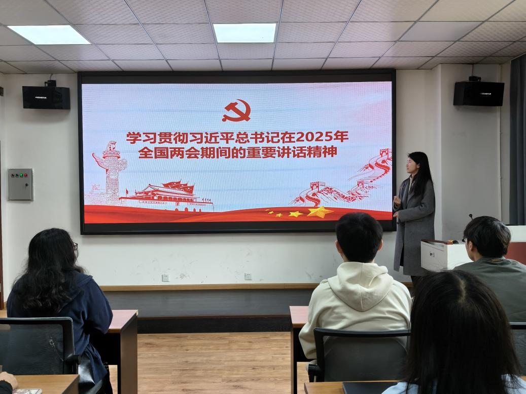 2025年4月8日上午11: 00,为深入学习贯彻习近平总书记在 2025 年全国两会期间的重要讲话精神,引导广大同学深刻领悟两会内涵,将两会精神转化为实际行动,bat365官网登录入口研究生会临时党支部于0318教室开展了“学习贯彻习近平总书记在2025年全国两会期间的重要讲话精神”专题学习活动。